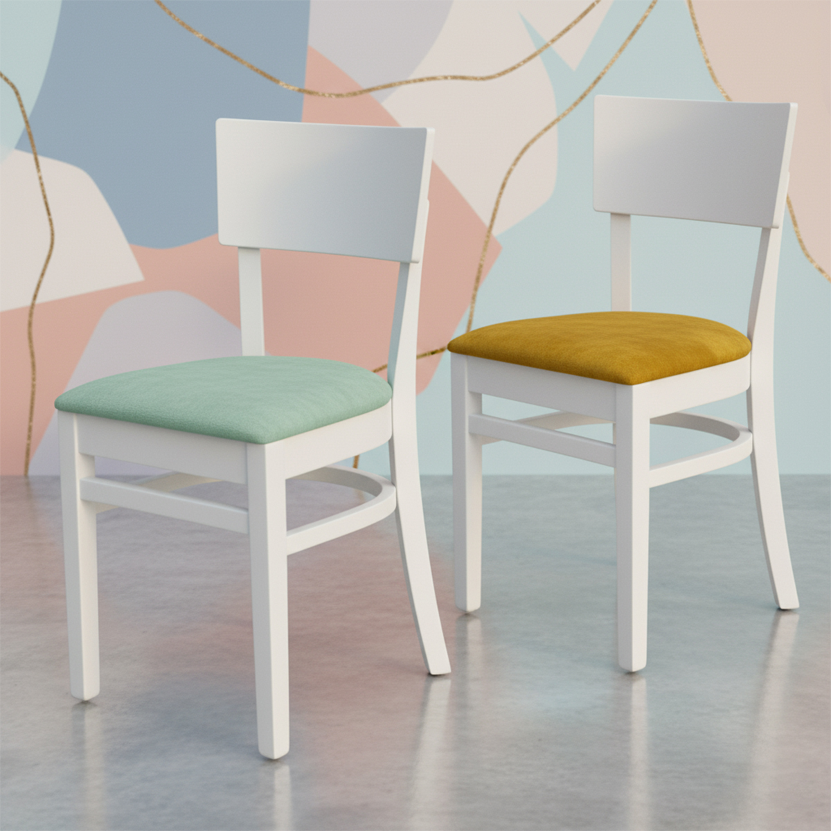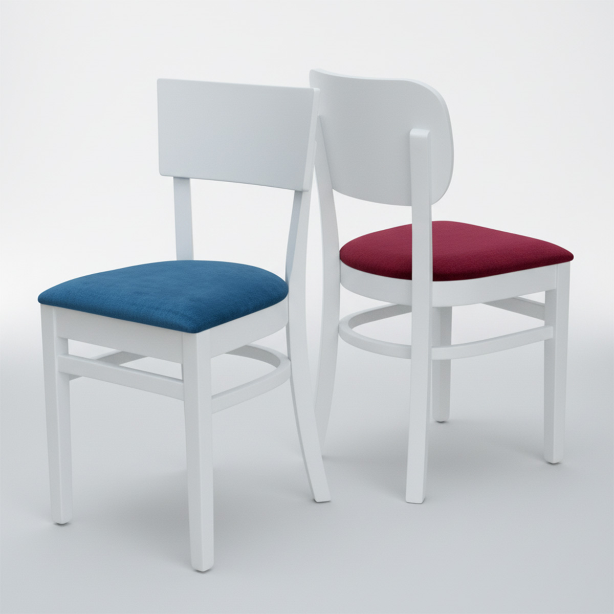 Scaun executat din lemn de fag, în stil tâmplăresc, rezistent la trafic intens.