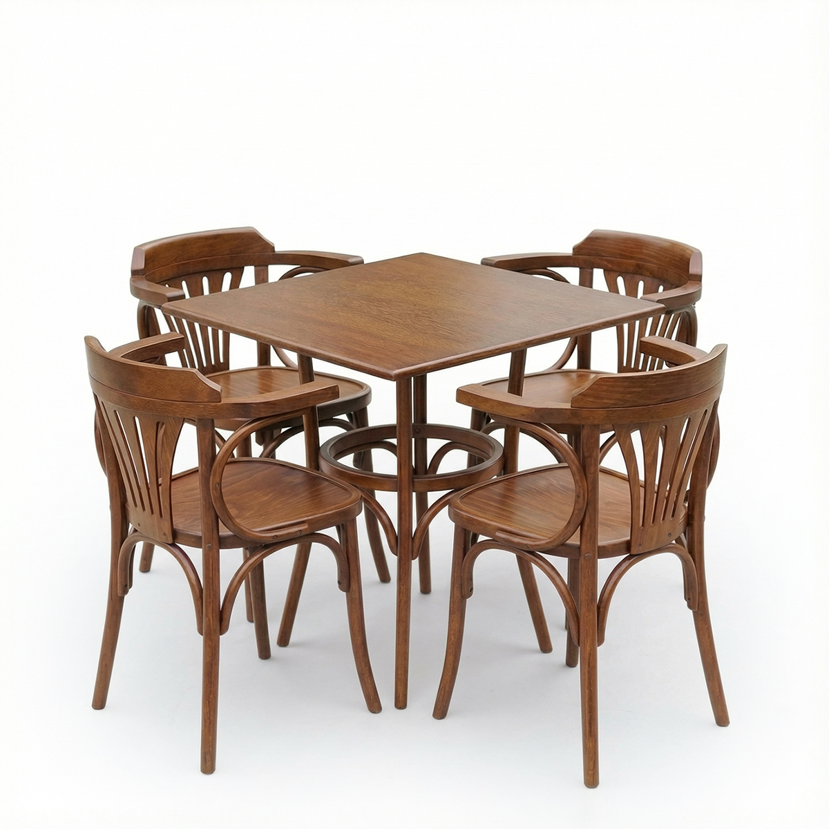 Set masă Bistro pătrată + 4 scaune din lemn curbat